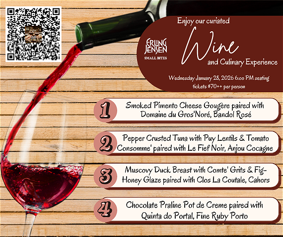 Start the party off with wild mushroom flatbread or braised beef short rib bites for the table, then sample from Erling's signature salads, sandwiches and main plates, like his famed roasted rack of lamb in a pecans mustard and garlic molasses crust. Full bar service compliments the cuisine with handmade cocktails, select wines and craft beer.